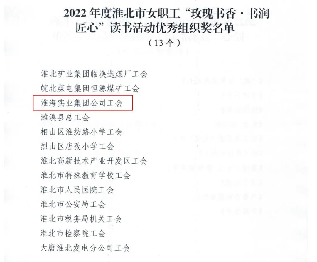 喜報 | 淮海實業(yè)集團工會獲淮北市總工會讀書活動優(yōu)秀組織獎