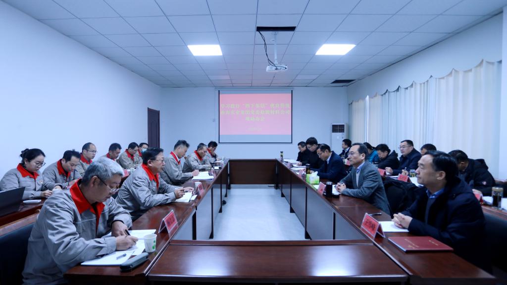 為大力弘揚“四下基層”優良傳統,12月15日上午,淮海實業集團在新材料公司召開現場辦公會,調研工作開展情況,面對面解決突出問題。集團公司黨委副書記、工會主席王振江主持會議并講話,集團公司領導羅偉、彭樹強、王雪峰、翟建廷出席會議,機關相關部門負責人、新材料公司領導班子成員參加會議。集團公司領導班子一行,首先來到煤矸石脫碳生產現場,詳細了解生產試運行情況,實地走訪中控室,通過視頻察看主要裝備運轉情況,...