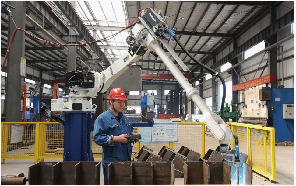 安徽礦機自動焊接機器人正在進行焊接作業