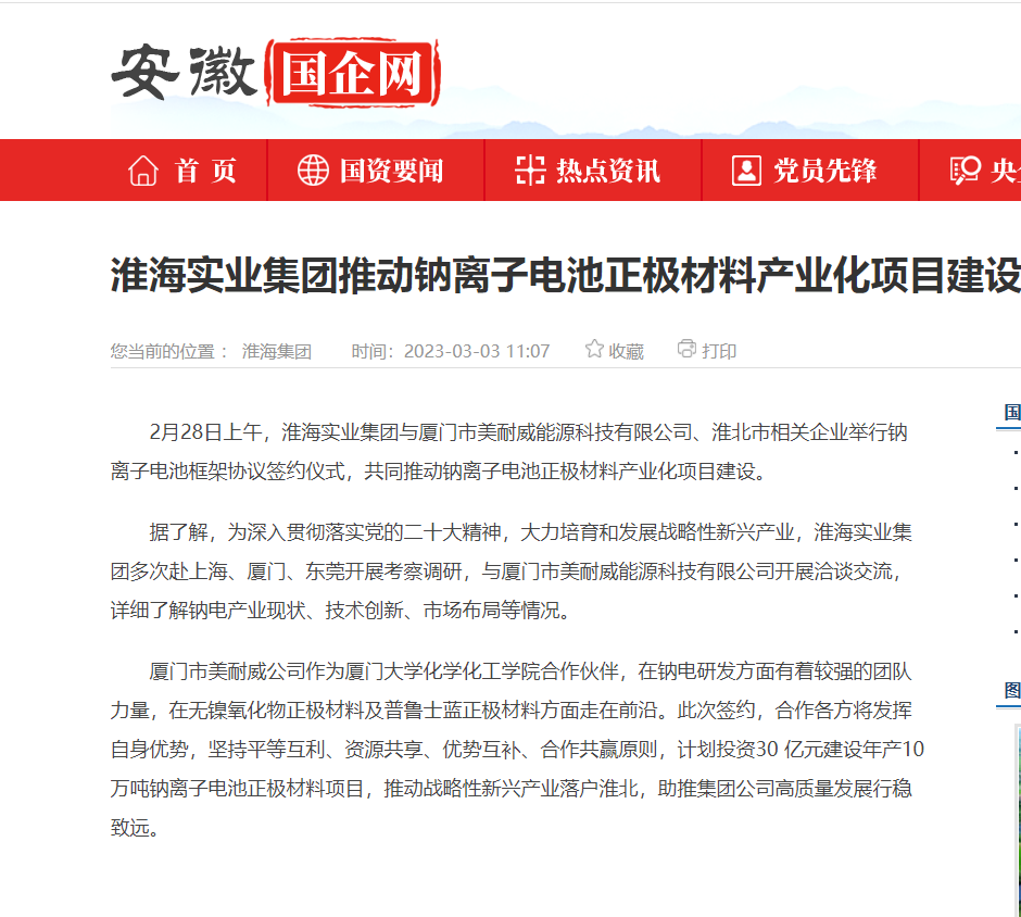 淮海實業集團推動鈉離子電池正極材料產業化項目建設
