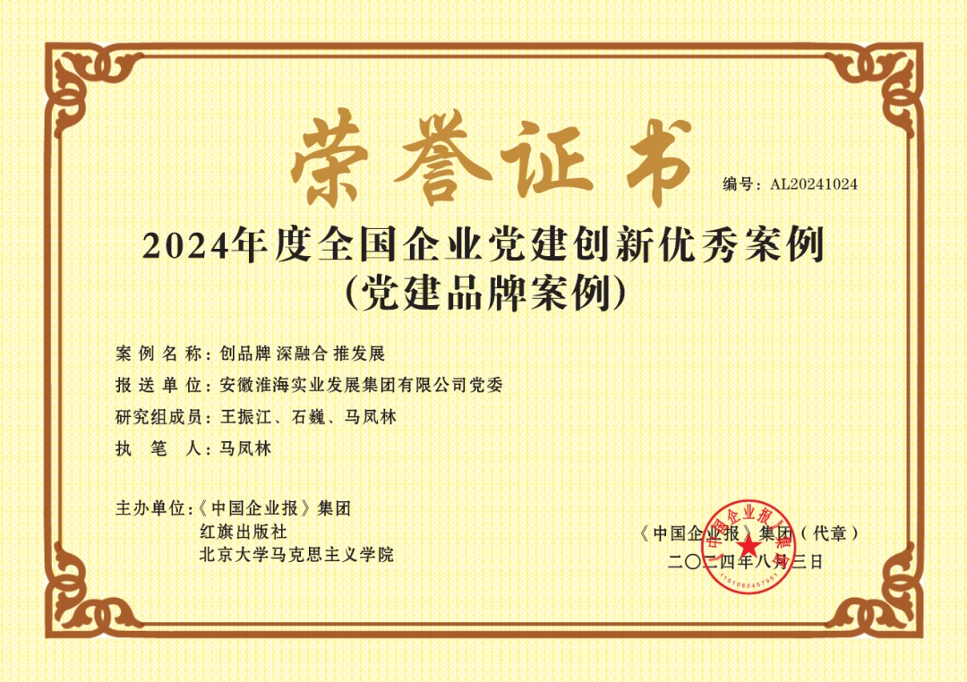 日前,2024全國企業黨建(案例)研討會暨第四屆企業黨建創新優秀案例發布儀式在北京成功舉辦。淮海實業集團“創品牌 深融合 推發展”品牌案例,榮獲年度優秀黨建品牌案例。