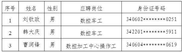 宿州市祁南工貿有限責任公司于2025年5月9日發布招聘公告、開展招聘工作,現面試、組織考察、體檢等工作已結束,經研究,擬錄用人選如下: