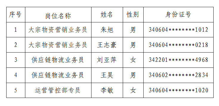 安徽淮海現代物流有限責任公司公開招聘考察人選名單公告