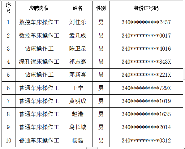 安徽省礦業(yè)機電裝備有限責(zé)任公司于2023年6月30日發(fā)布招聘公告、開展招聘工作,經(jīng)過面試、考察、體檢和集體研究,現(xiàn)將擬錄用人員名單公告如下: