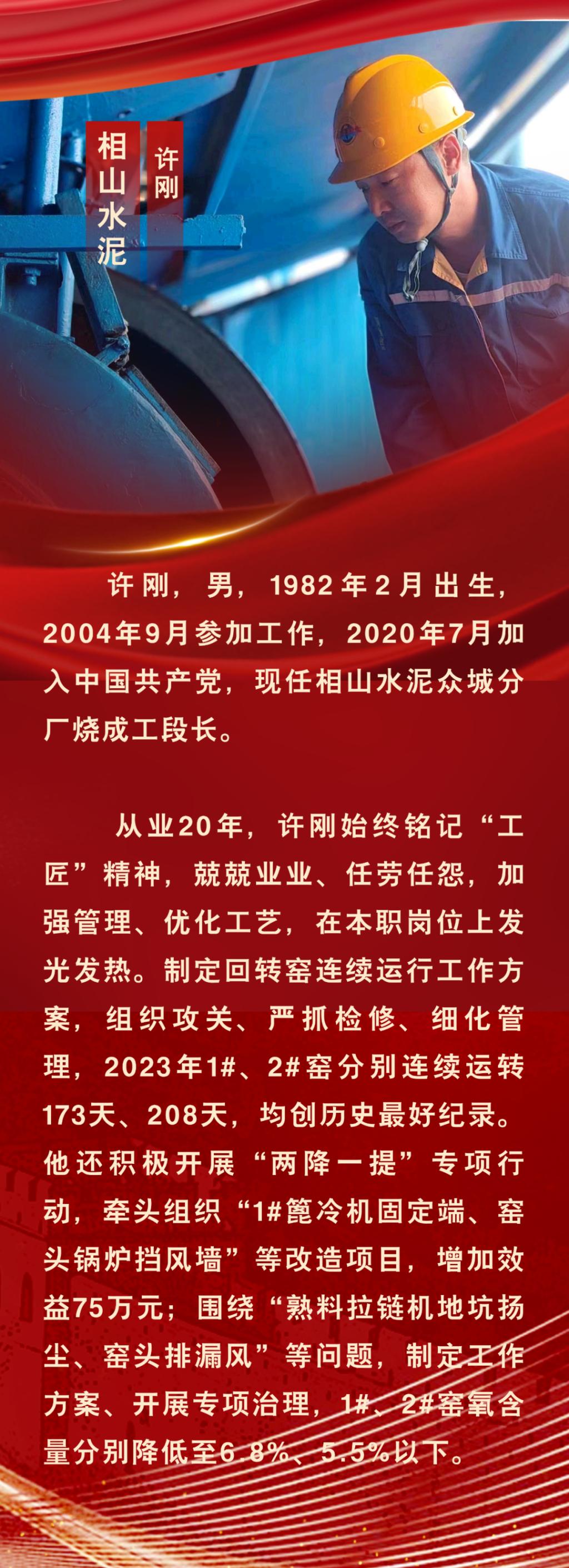 集團公司優秀個人先進事跡之相山水泥許剛:初心如磐 實干擔當