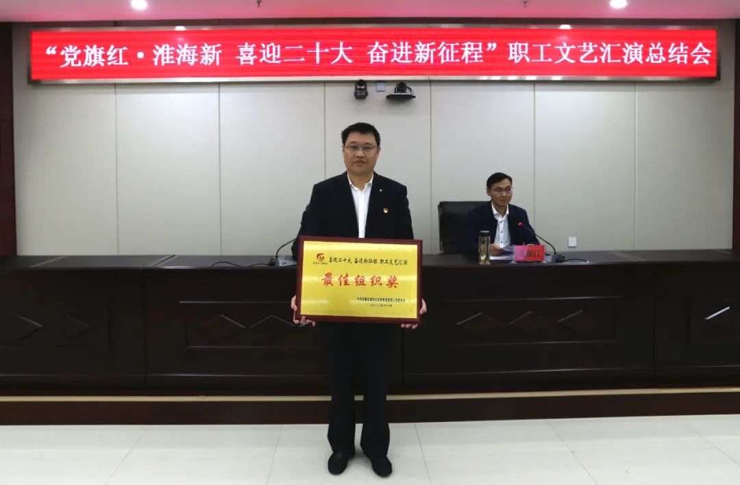 據(jù)了解,集團公司黨委副書記、工會主席王振江在會上宣讀了“黨旗紅?淮海新 喜迎二十大 奮進新征程”職工文藝匯演評選出的工會工作積極分子、“我最喜愛的文藝匯演節(jié)目”及文藝匯演“最佳組織獎”名單,并舉行了頒獎儀式,總結(jié)了此次匯演取得的工作成效。