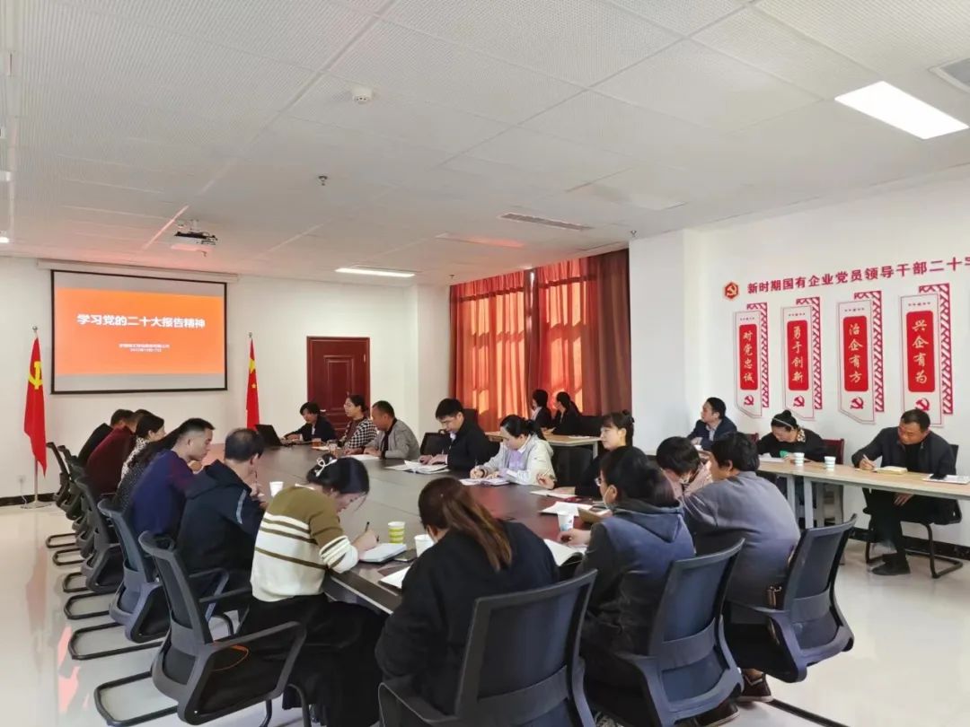 公司黨總支通過召開理論學(xué)習(xí)中心組學(xué)習(xí)(擴(kuò)大)會(huì)暨黨的二十大精神專題會(huì)議,圍繞黨的二十大精神進(jìn)行學(xué)習(xí)交流研討,全面安排部署二十大精神宣貫工作。要求要把深入學(xué)習(xí)宣傳貫徹黨的二十大精神作為當(dāng)前和今后一個(gè)時(shí)期的首要政治任務(wù),堅(jiān)持讀原文、悟原理,深刻領(lǐng)會(huì)黨的二十大報(bào)告中提出的新思想、新判斷、新目標(biāo)、新舉措、新要求,把黨的二十大精神貫徹到公司生產(chǎn)經(jīng)營和發(fā)展實(shí)踐中,推動(dòng)黨的二十大精神落地落實(shí)。各基層黨支部結(jié)合實(shí)際,廣泛組織黨員干部群眾通過專題學(xué)習(xí)、個(gè)人自學(xué)、主題問答、撰寫心得體會(huì)等方式深入學(xué)習(xí),深刻領(lǐng)會(huì)精神實(shí)質(zhì),確保黨的二十大精神入耳入腦入心。