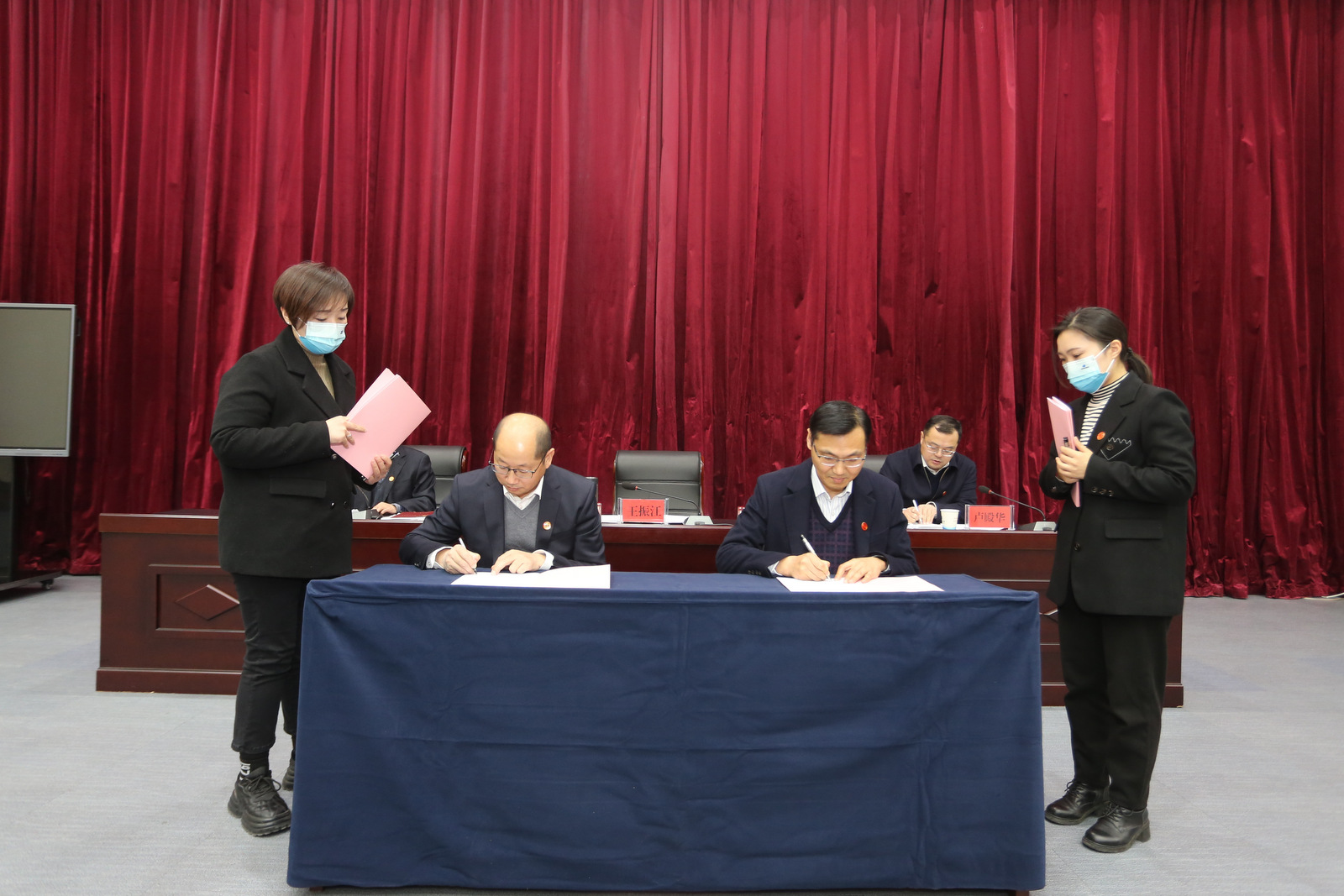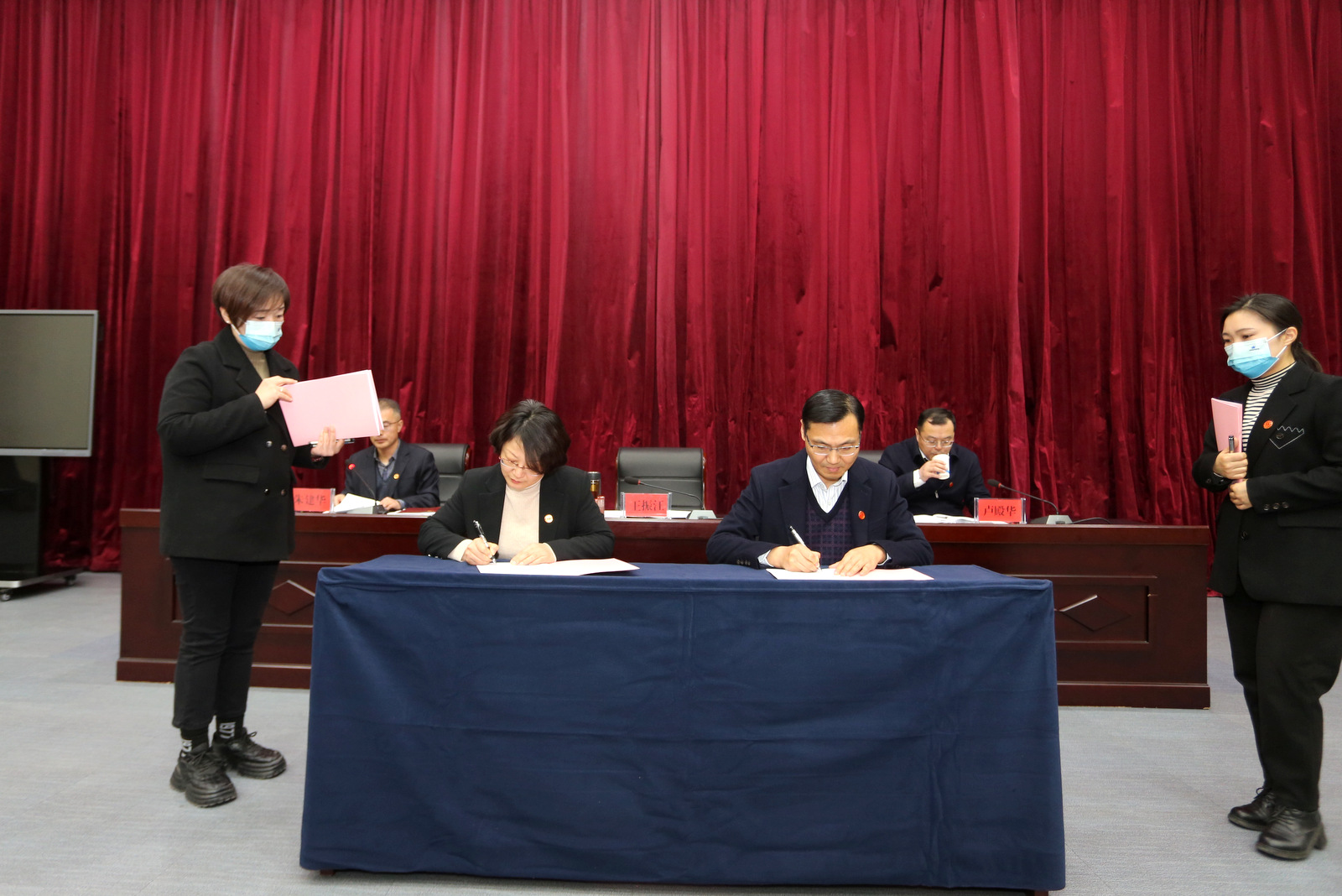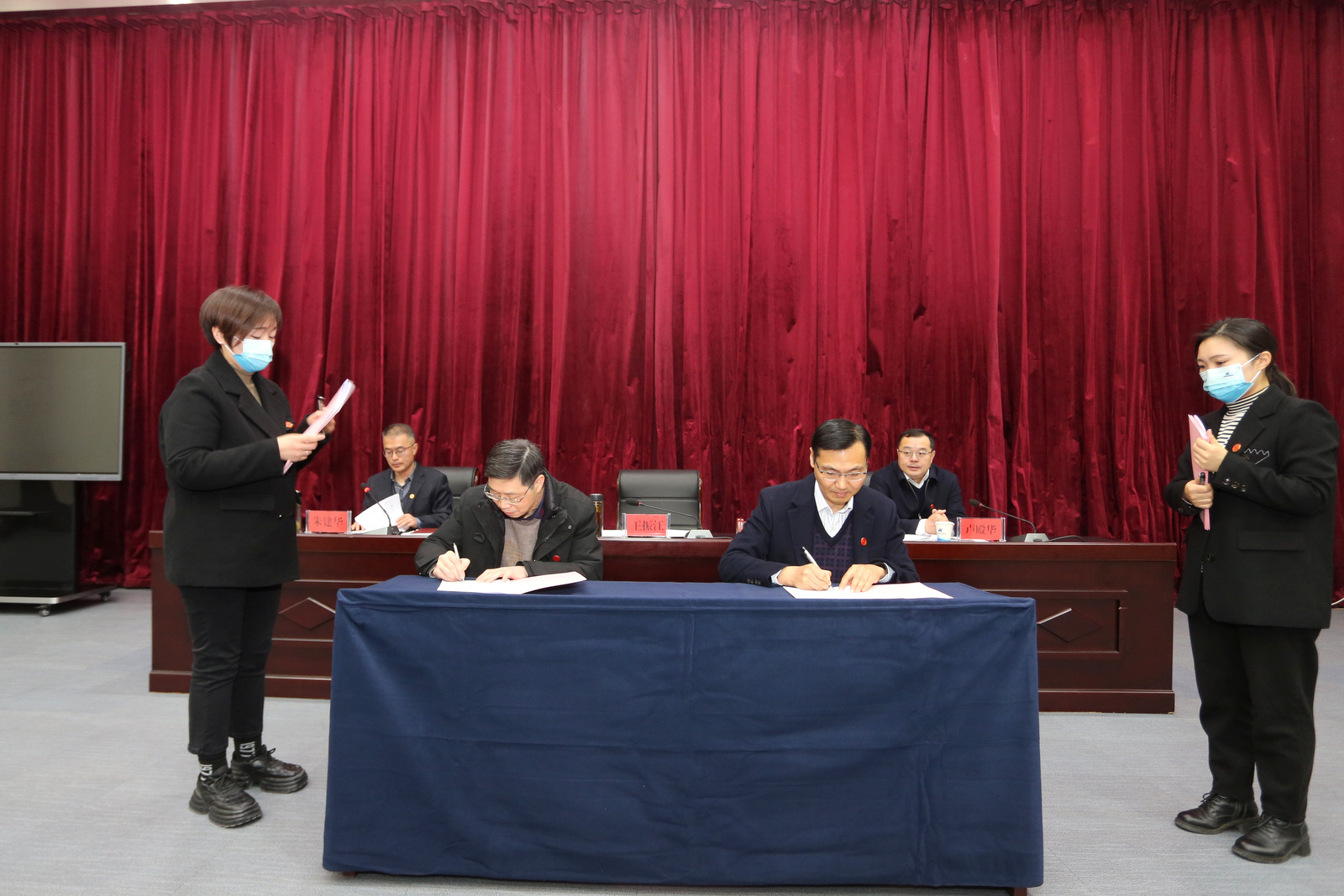 王振江與中勘科技公司等四家單位工會負(fù)責(zé)人現(xiàn)場簽訂《2023年工會目標(biāo)責(zé)任書》。