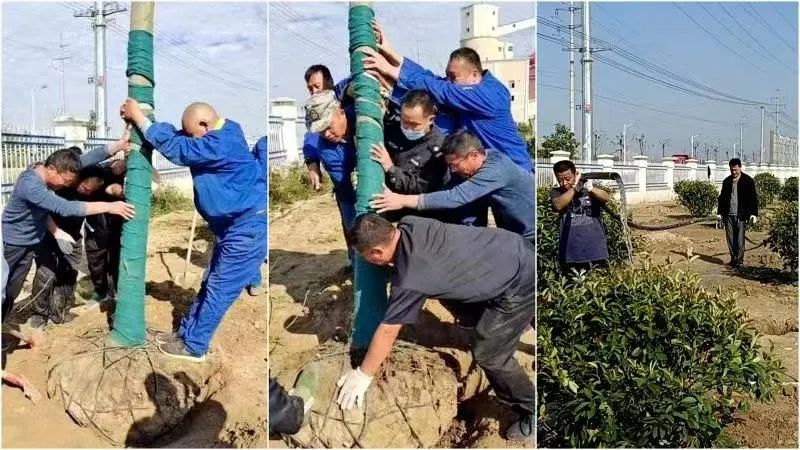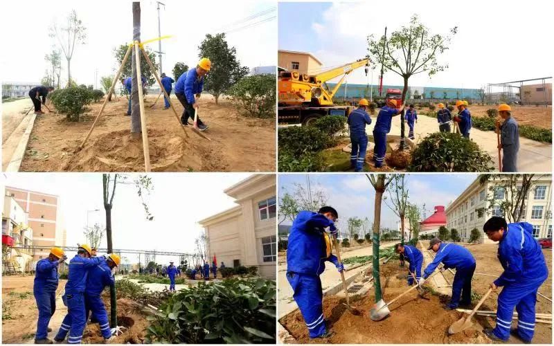 公司從8月中旬起開始整地覆土,9月組織各支部平整場地,清撿石塊、垃圾,放線定位,公司各單位員工進行翻土,挖坑,裝車,搬運、種植、修剪、澆水,全流程約1000名員工參與植樹。廠區(qū)綠化面積約3萬平方,香樟、紫薇等樹600余棵;紅葉石楠苗、衛(wèi)矛苗等苗10萬余株;亮晶女貞苗、冬青球1000余棵,鋪設(shè)草坪3萬平方。