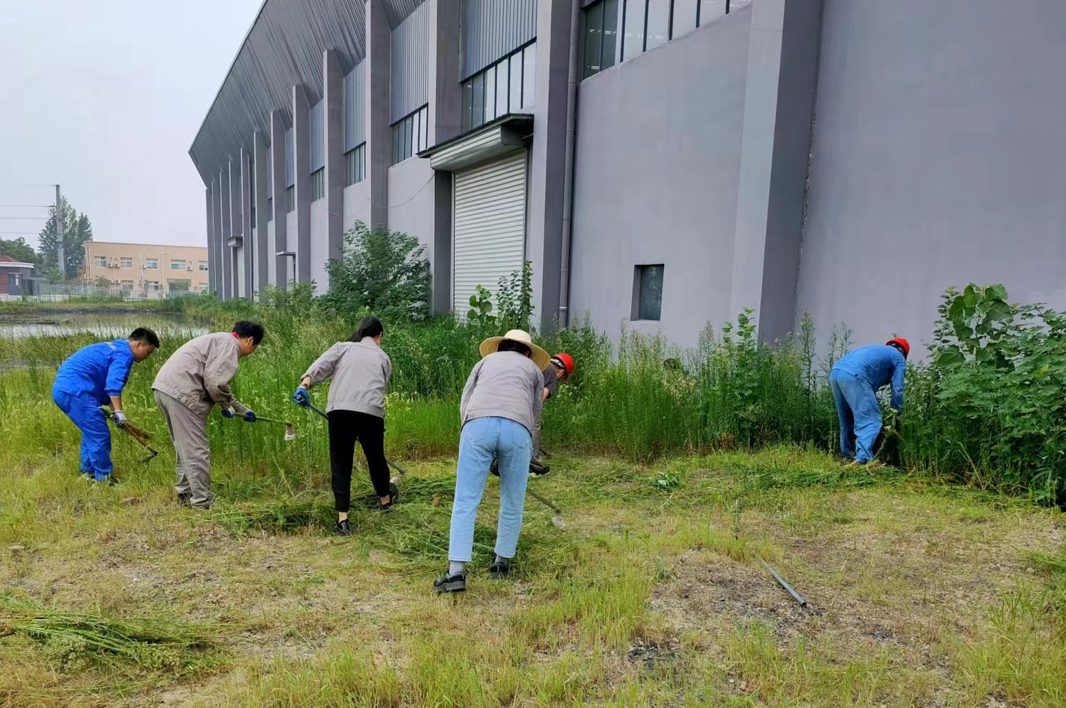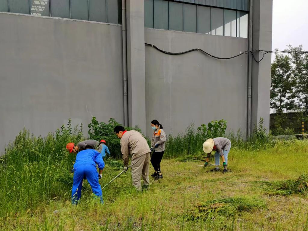 連日來持續高溫,為雜草生長提供了有利條件,新材料公司黨支部組織黨員群眾開展主題黨日活動,在園區內進行除雜草義務勞動。