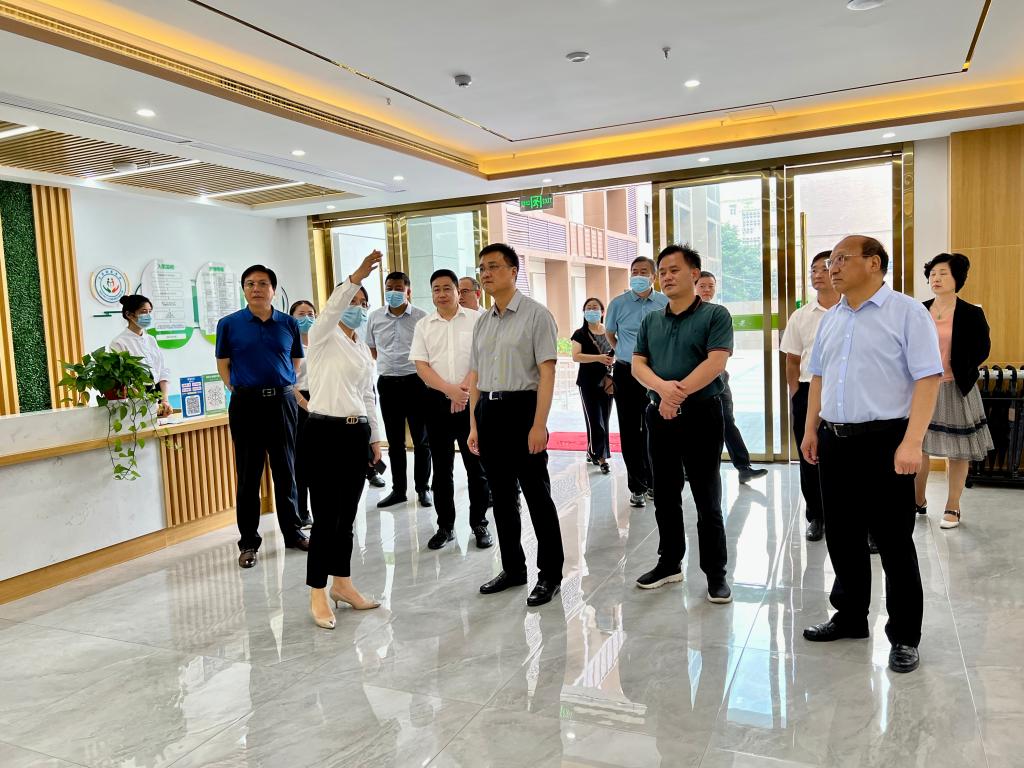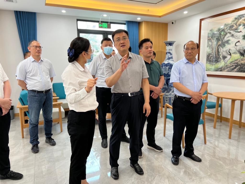 7月29日,淮北市政府黨組成員姚珂、市政協副主席孫興學到淮海養老黎苑社區綜合為老服務中心和淮??叼B中心調研。集團公司總經理助理戴禮越陪同。