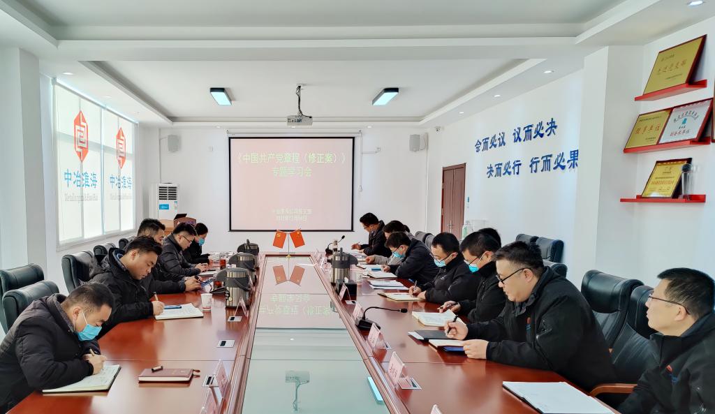 為深入學習黨的二十大精神,近日,中冶淮海公司黨支部組織開展了“學習新黨章,奮進新征程”主題黨日活動,以多種形式學習黨的二十大通過的《中國共產黨章程(修正案)》,確保學習貫徹黨的二十大精神走深走實。