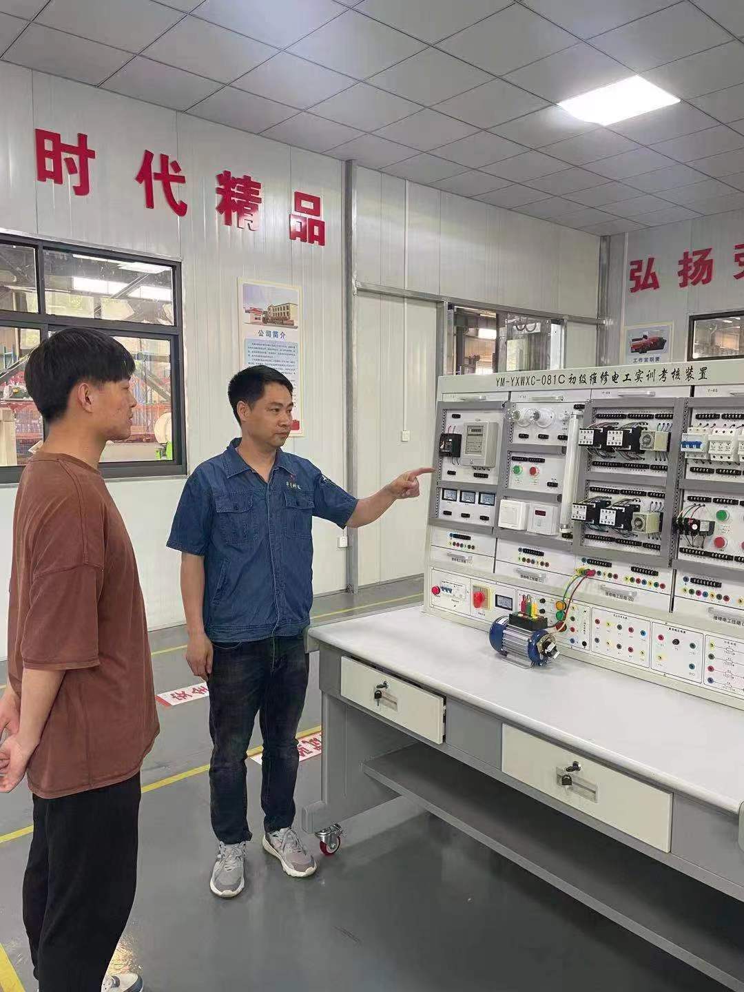 走進華星公司勞模創新工作室,最先映入眼簾的即是擺在工作室中央的培訓裝置。“這是我們引進的YM-YXWXC-081C電工實訓考核裝置,主要用于電力操作實習,它是教會我們實操演練的機器‘老師’”集團公司勞動模范、華星公司洗選設備制造廠電工班班長王創風趣地說道。