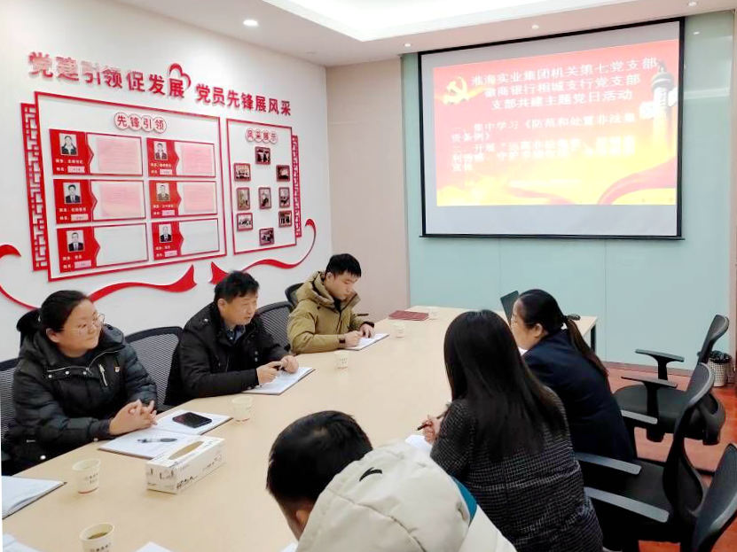 2月20日,集團公司機關第七黨支部聯(lián)合徽商銀行相城支行黨支部開展共建活動,共同學習《防范和處置非法集資條例》,并深入社區(qū)、企業(yè)、街道等場所,發(fā)放宣傳手冊,認真介紹非法集資基本特征、嚴重危害、表現(xiàn)形式、常見手段等,詳細講解防范措施、金融知識等內容,提醒市民群眾樹立正確投資理念,謹防上當受騙。